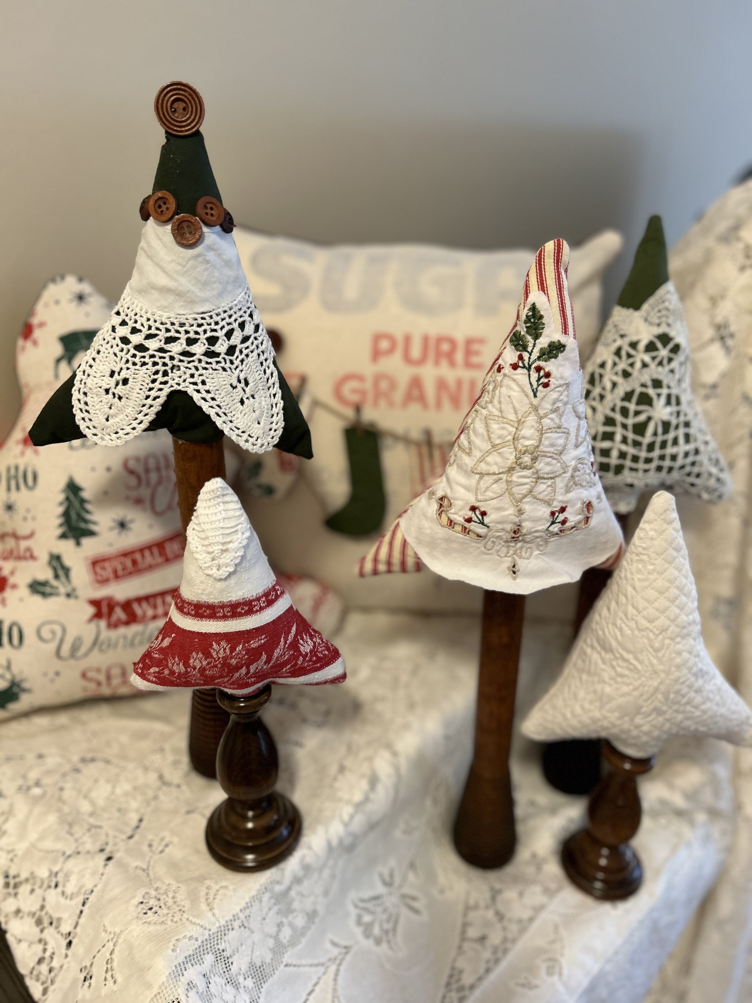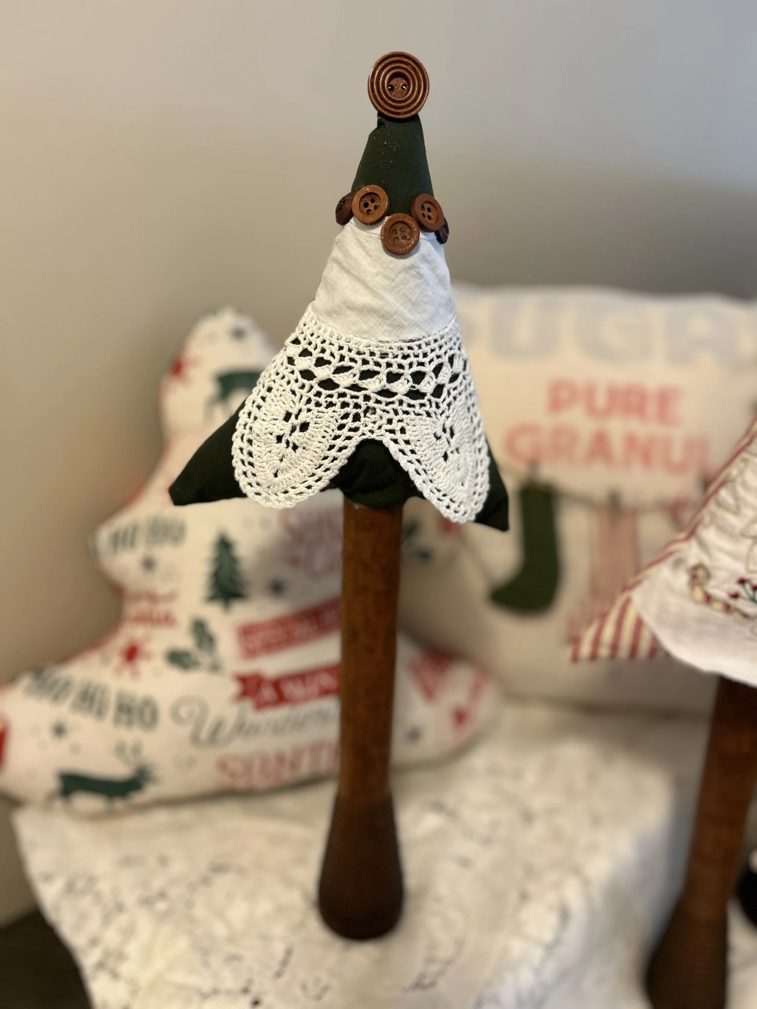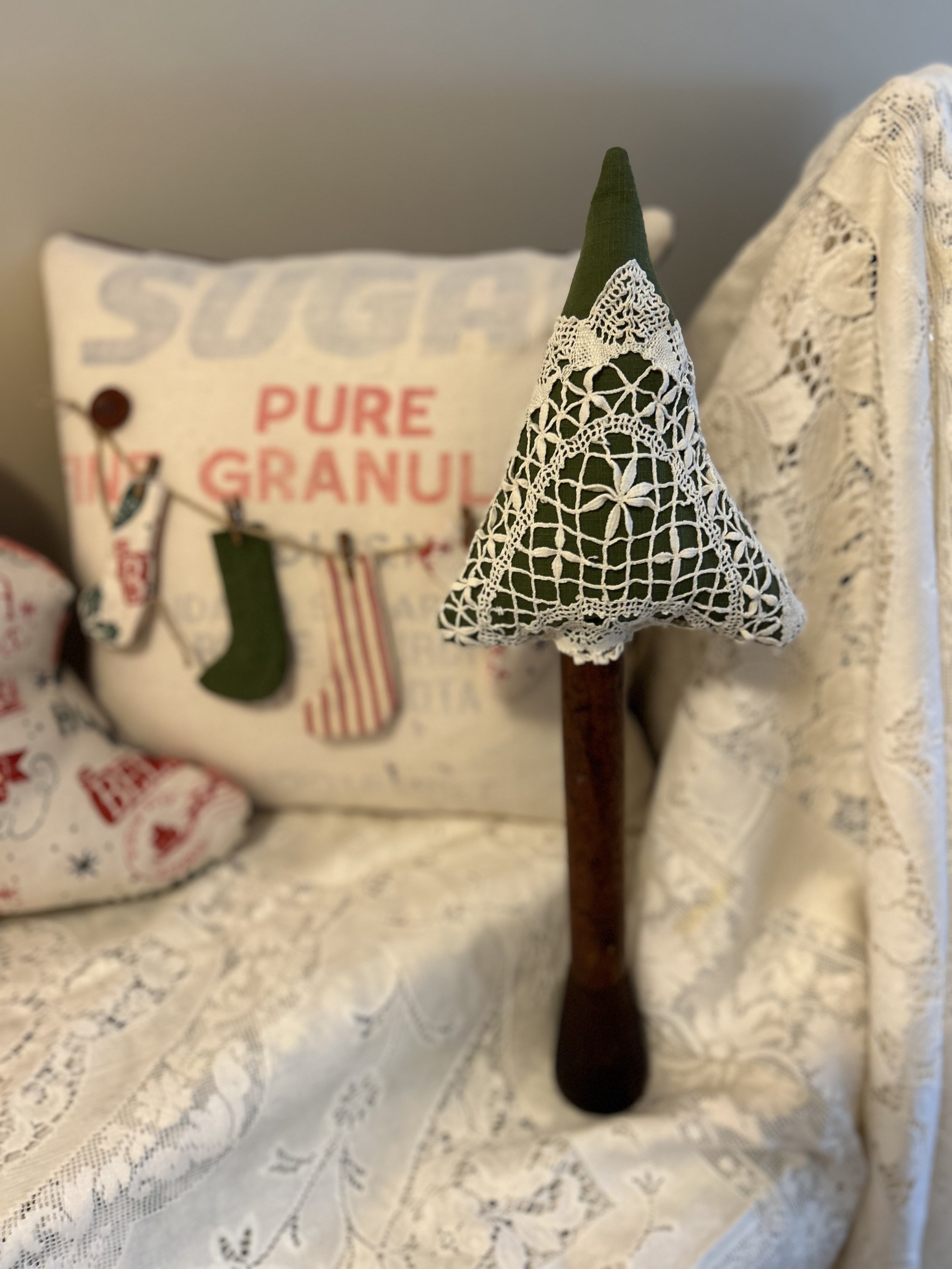 O' Christmas Tree Pillow $15.00 Sold out Wooden Spool Trees $20.00 Wooden Candlestick Trees $15.00 Sugar Sack Pillow w/ Socks $35.00 Sold out